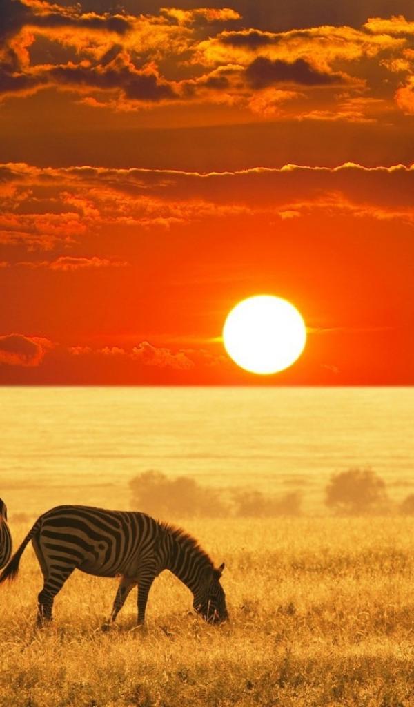 Wallpaper Zebras in a field at sunset, Africa