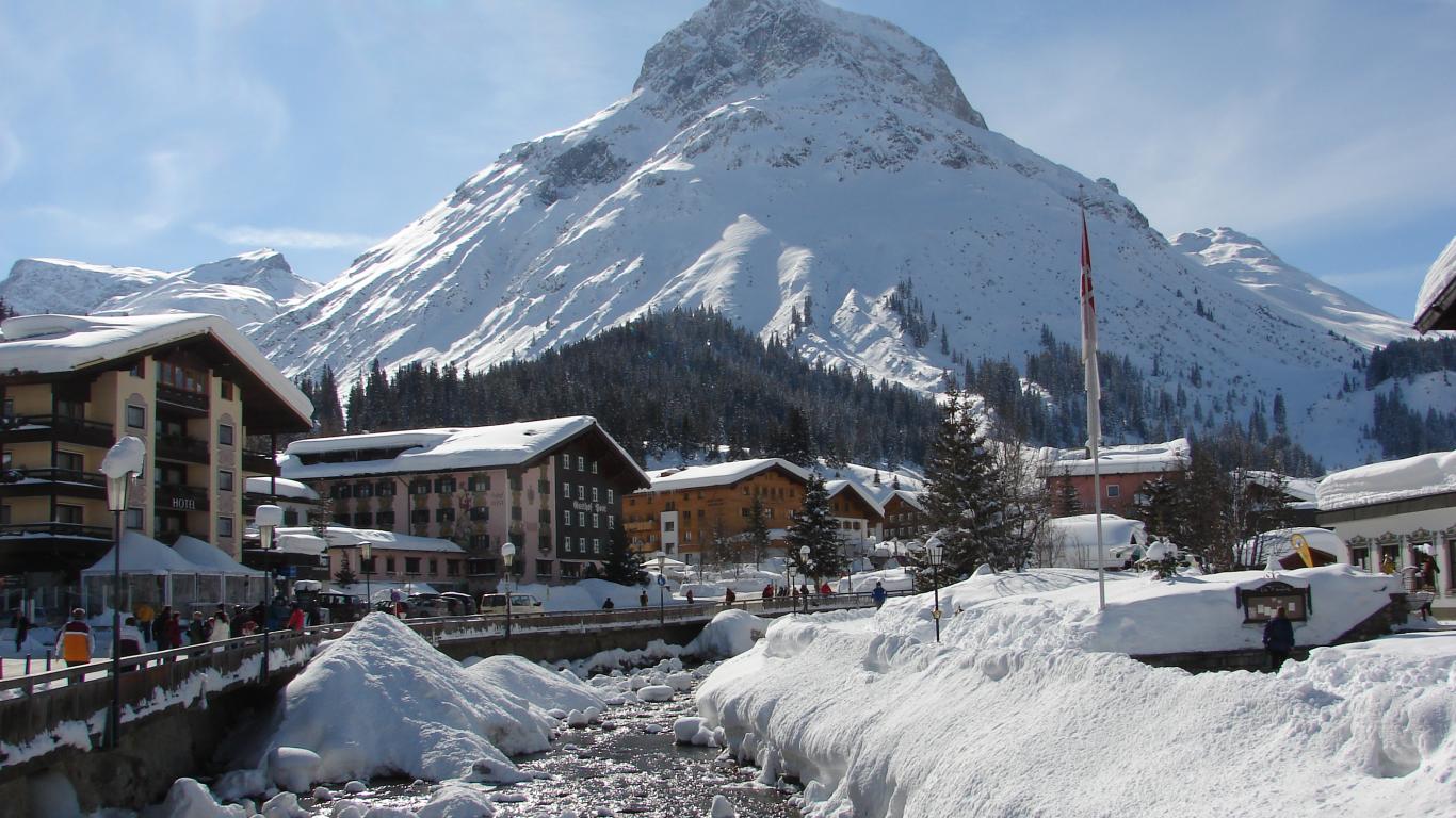 Wallpaper Mountain River in the ski resort of Lech, Austria