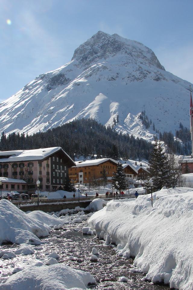 Wallpaper Mountain River in the ski resort of Lech, Austria