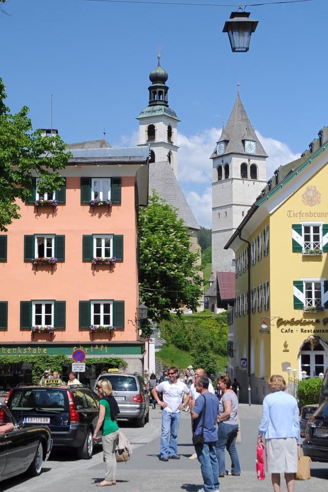 Wallpaper City street in the resort of Kitzbuehel, Austria