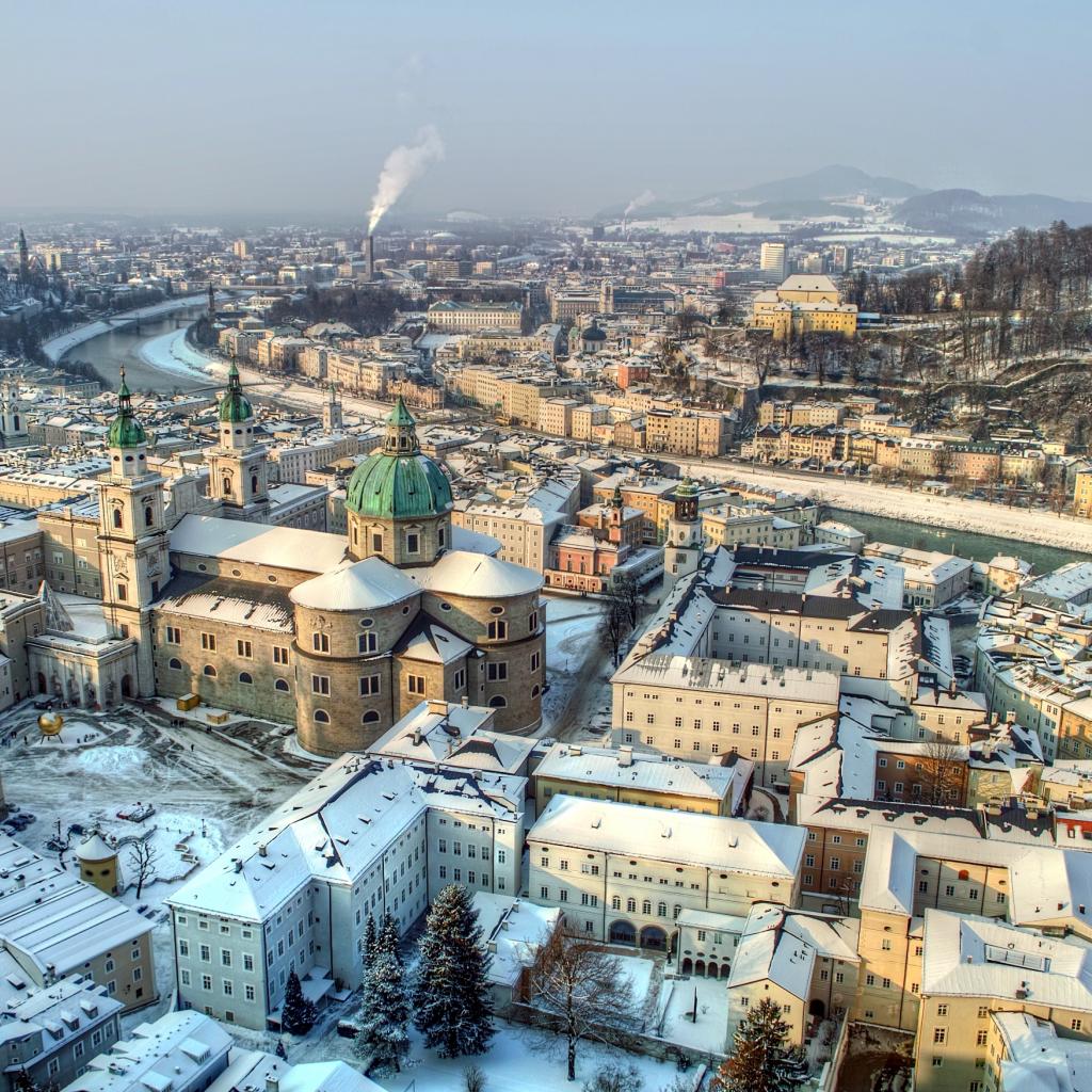 Wallpaper Winter panorama in the city of Salzburg, Austria