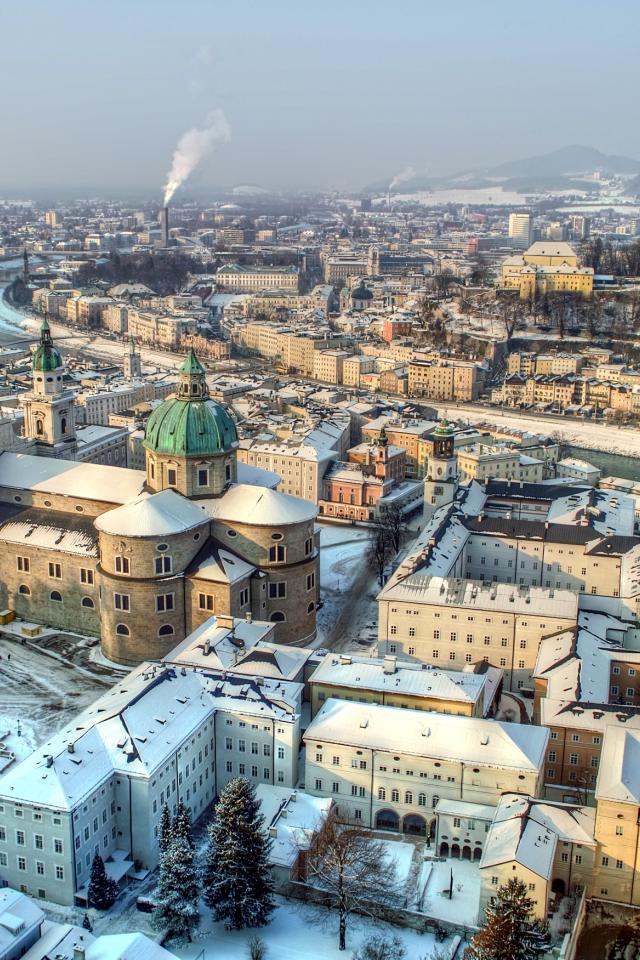 Wallpaper Winter panorama in the city of Salzburg, Austria