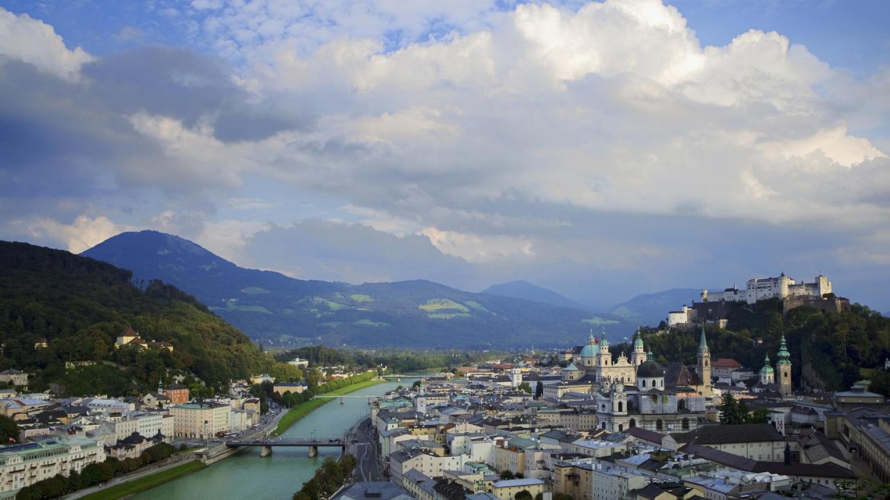Wallpaper City among the mountains of Salzburg, Austria
