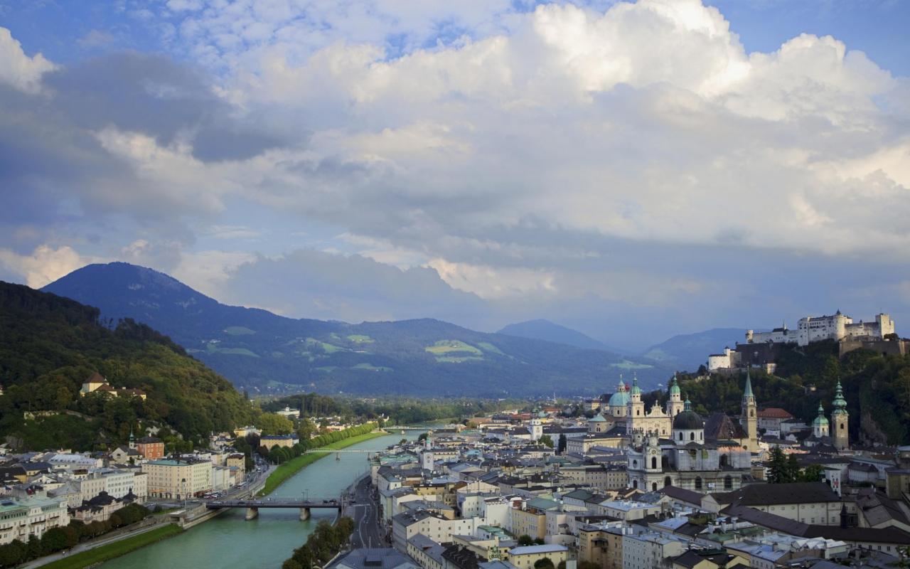 Wallpaper City among the mountains of Salzburg, Austria