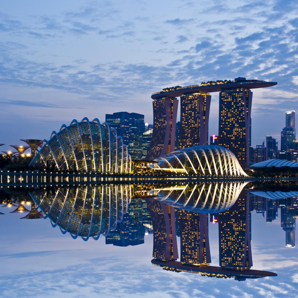 Wallpaper Singapore, Lights, Reflection, Skyscraper