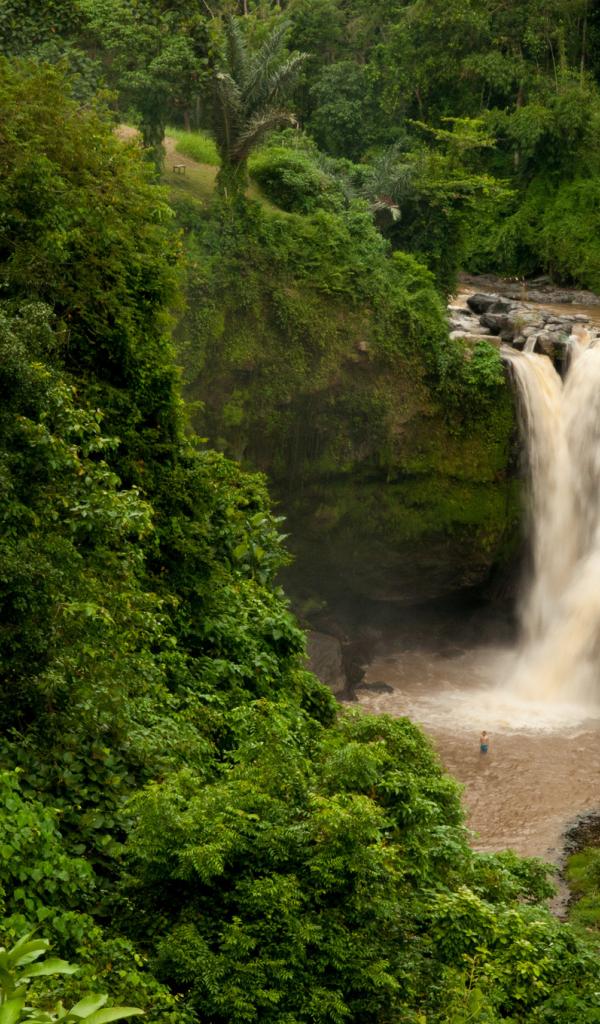 Wallpaper Fabulous waterfall on the lake in the jungle