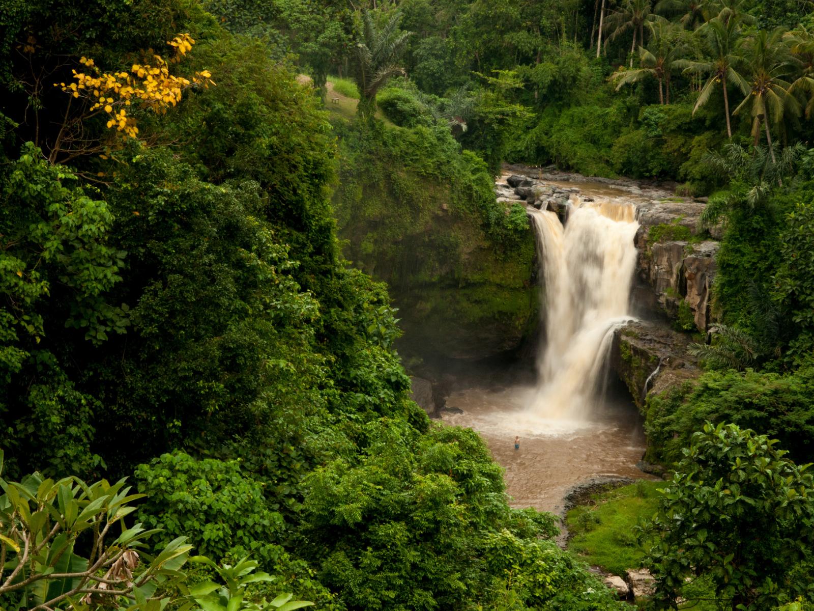 Wallpaper Fabulous waterfall on the lake in the jungle