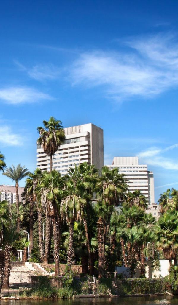 Wallpaper Palm trees on the background buildings in Cairo