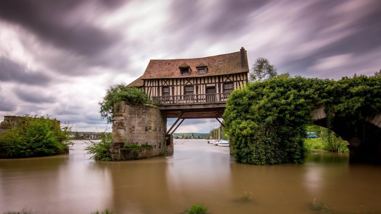 Wallpaper House on the bridge over the river, France