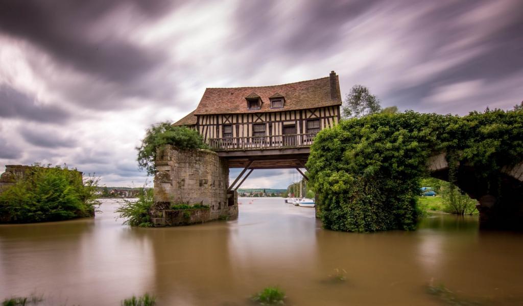 Wallpaper House on the bridge over the river, France