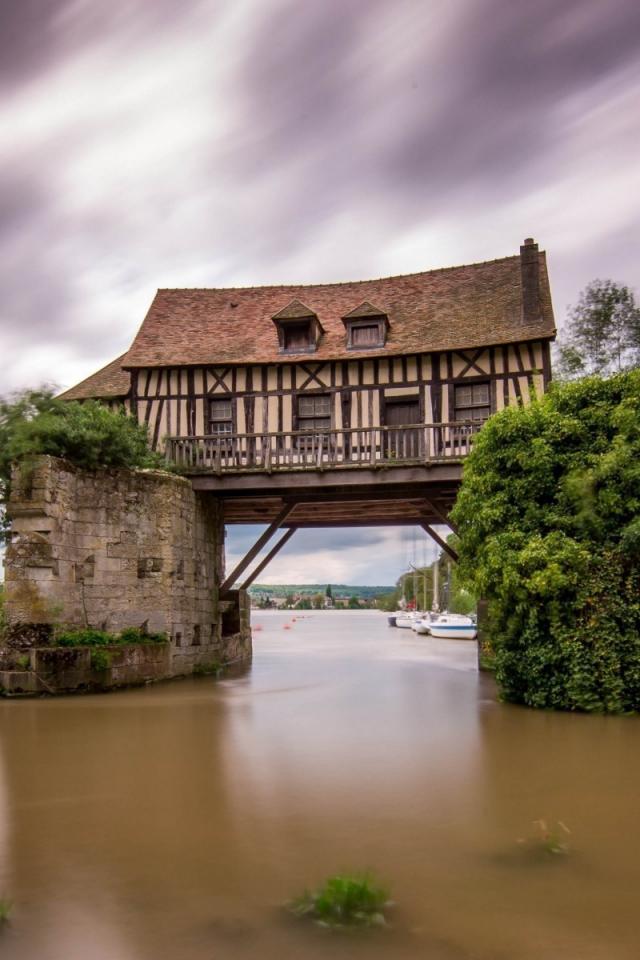 Wallpaper House on the bridge over the river, France