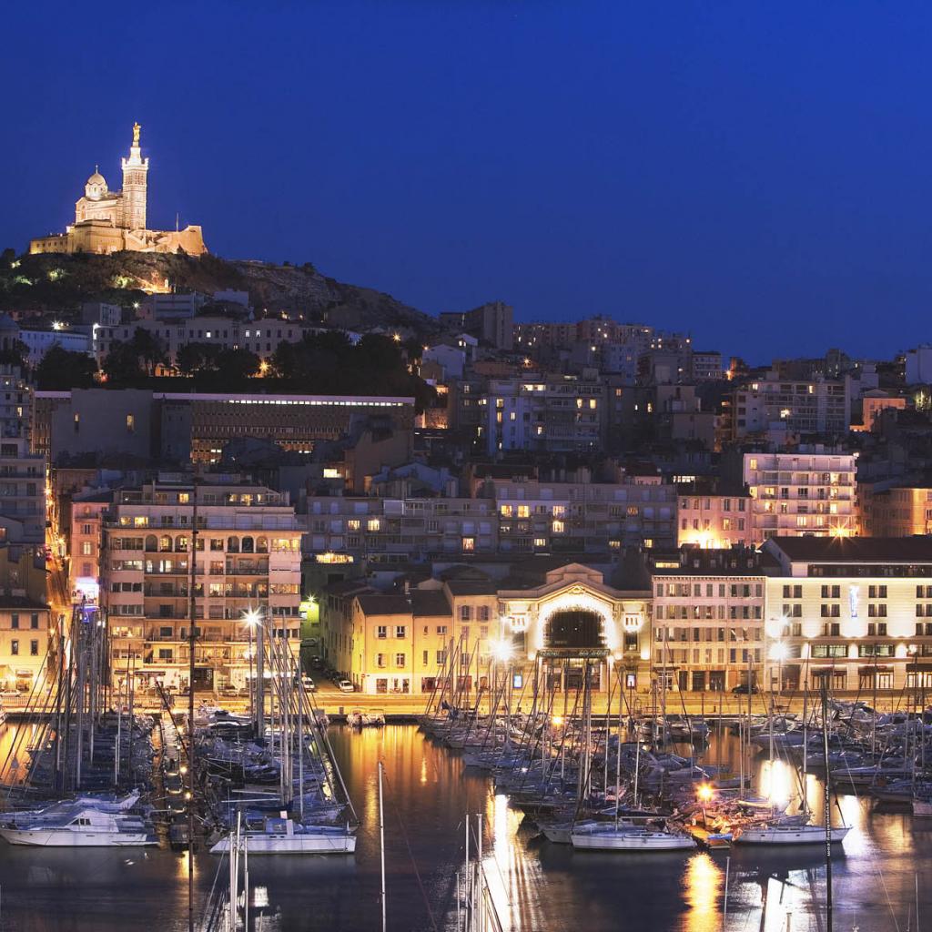 Wallpaper Night lights in the port city of Marseille, France