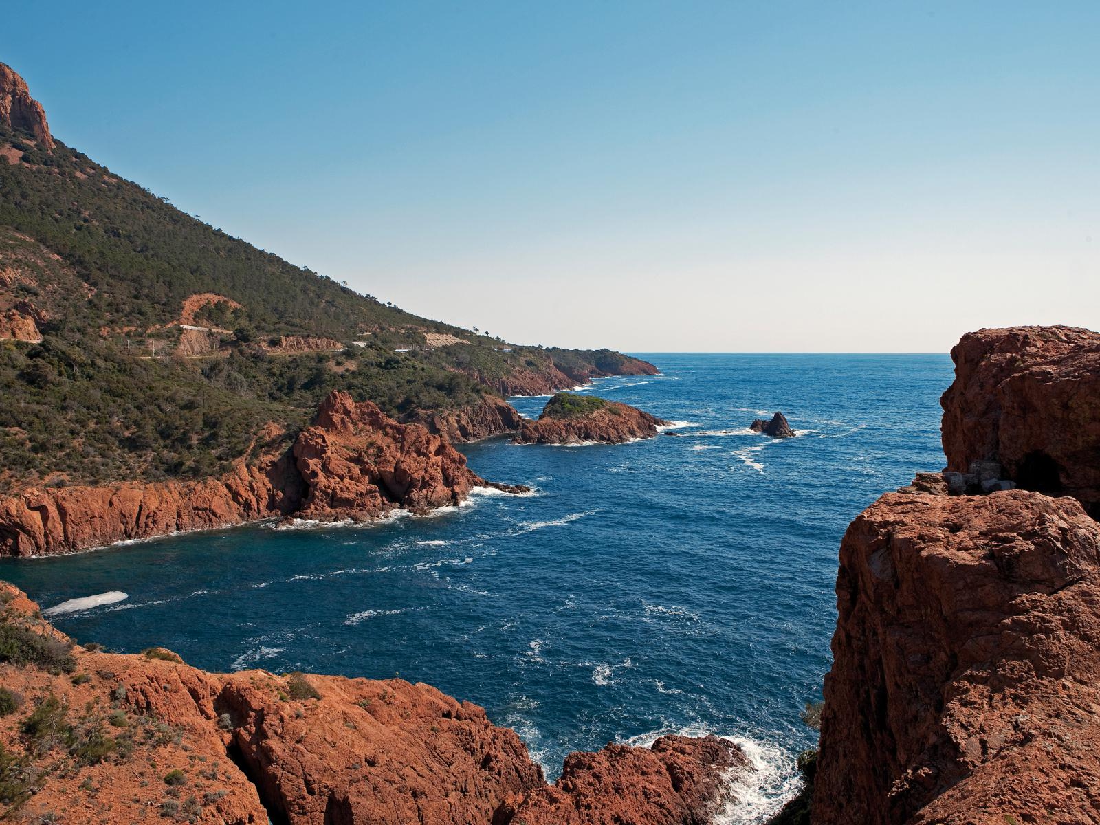 Wallpaper Red rocks at the resort Mandelieu la Napoule, France