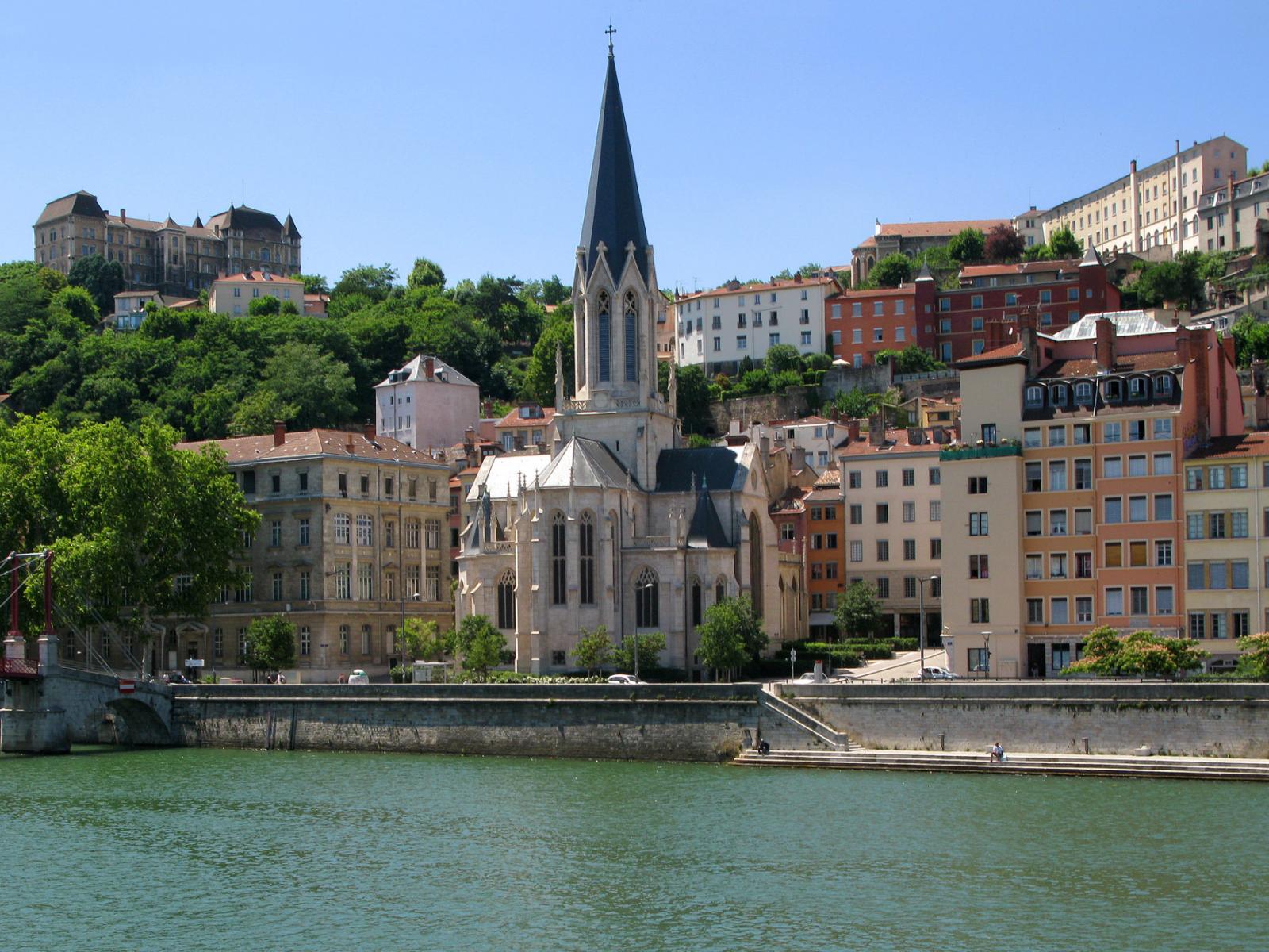 Wallpaper Church on the waterfront in the city of Lyon, France