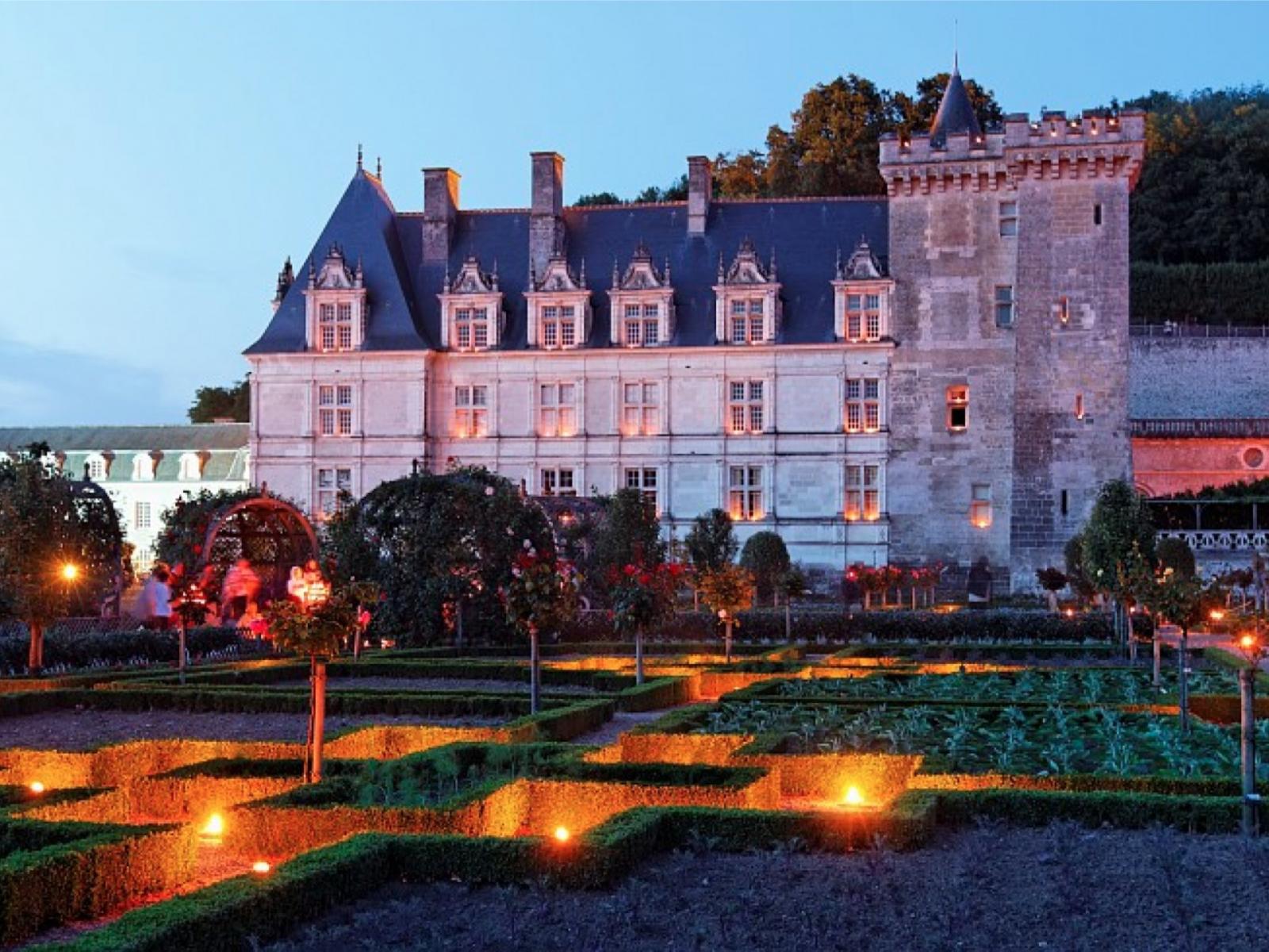 Wallpaper Evening lights in the castle in the Loire, France
