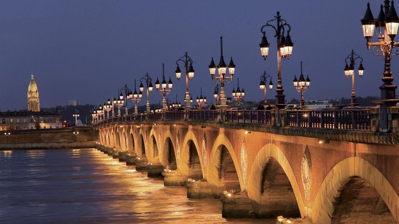 » Wallpaper Night bridge in Bordeaux, France