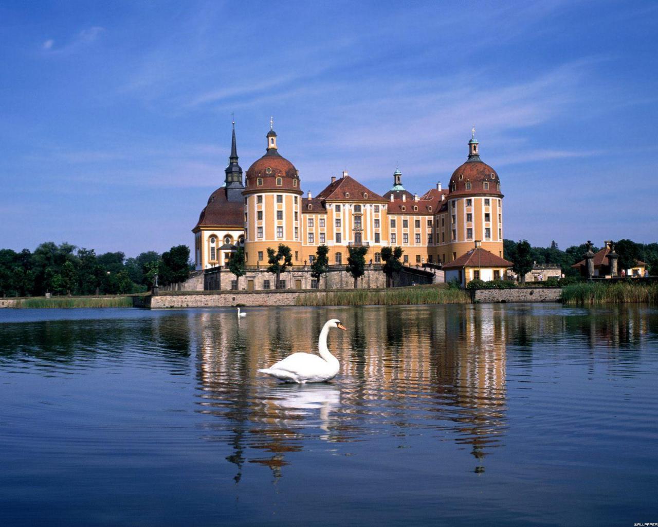 Wallpaper Pond with swans