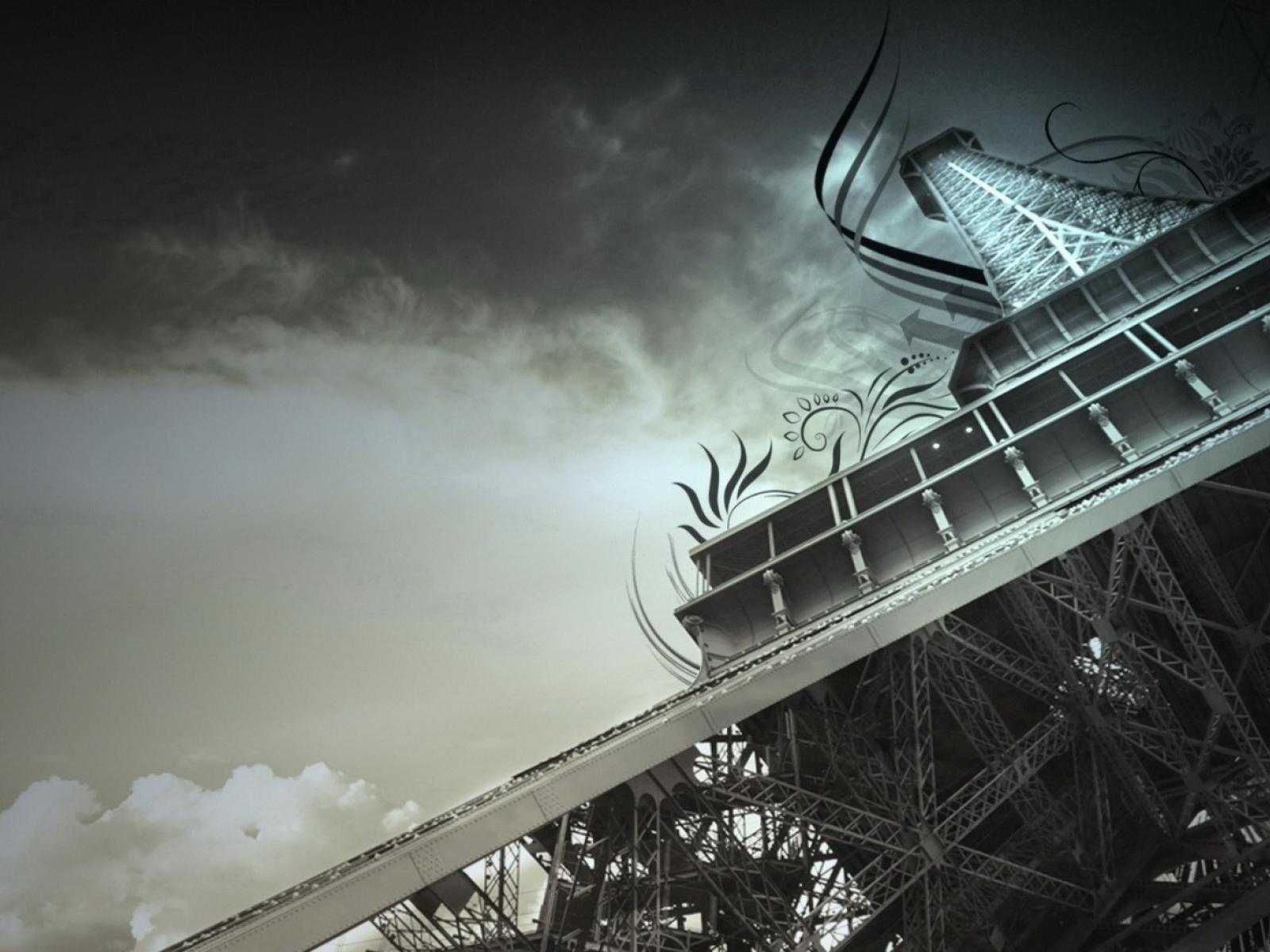 Wallpaper Eiffel tower in the clouds