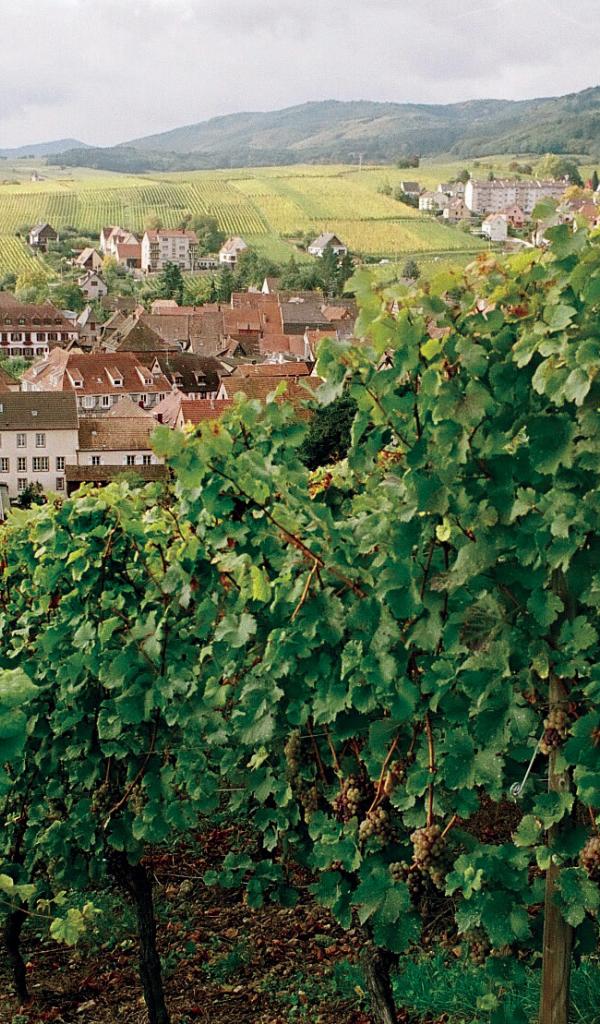 Wallpaper Vineyard on city background in Alsace, France