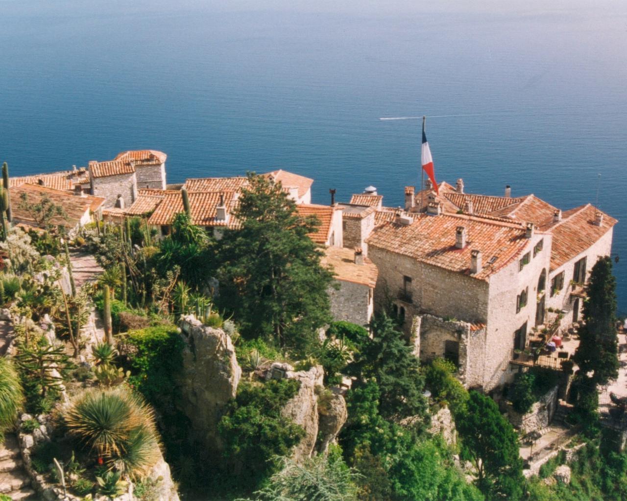 Wallpaper Houses on the background of the sea in the resort of Eze, France