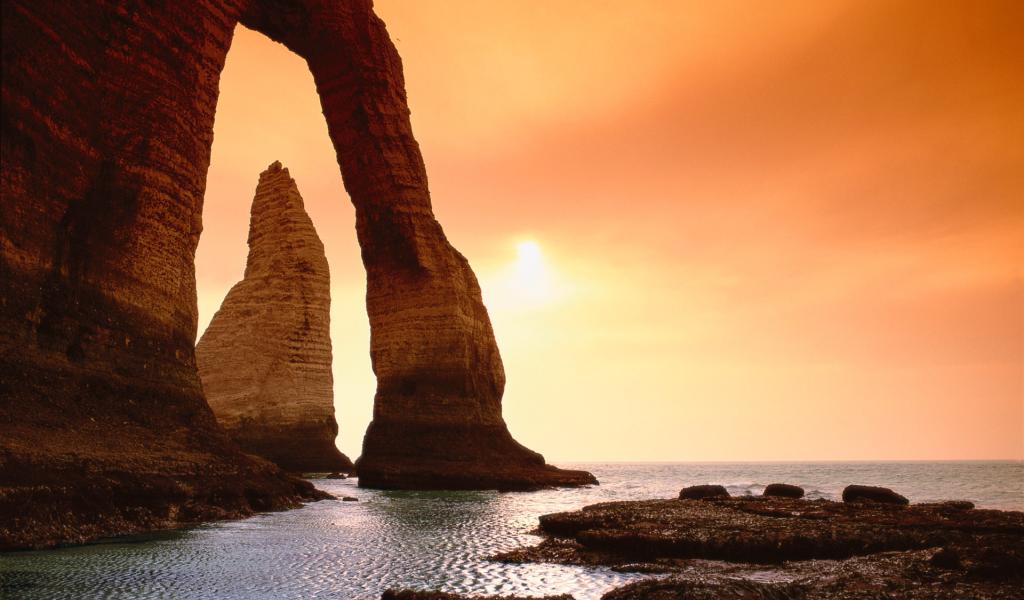 Wallpaper Sunset on the coast of Normandy, France