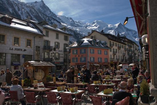 Wallpaper Street cafe in the ski resort of Megeve, France