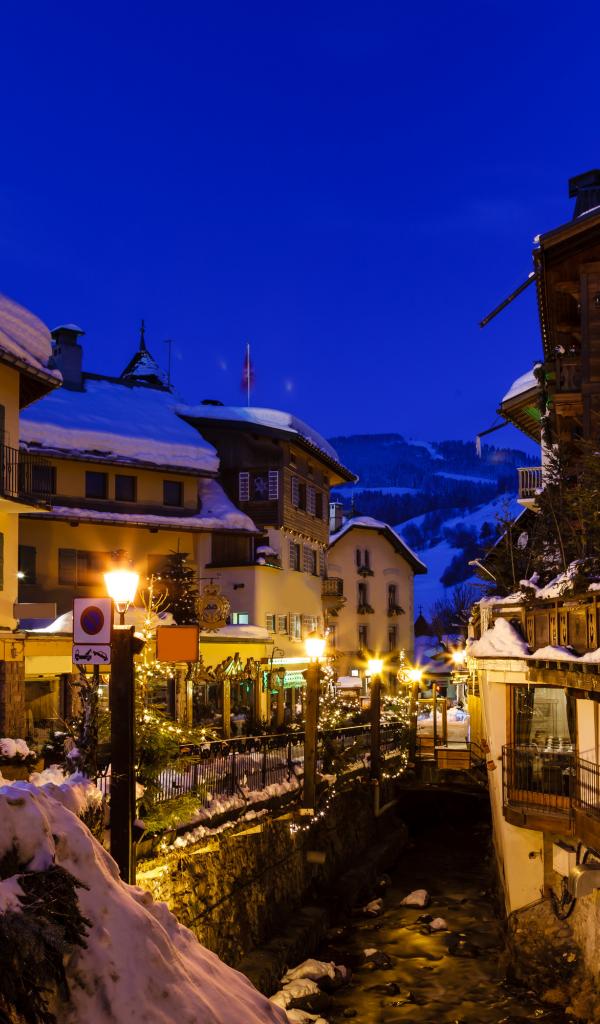 Wallpaper City street in the ski resort of Megeve, France
