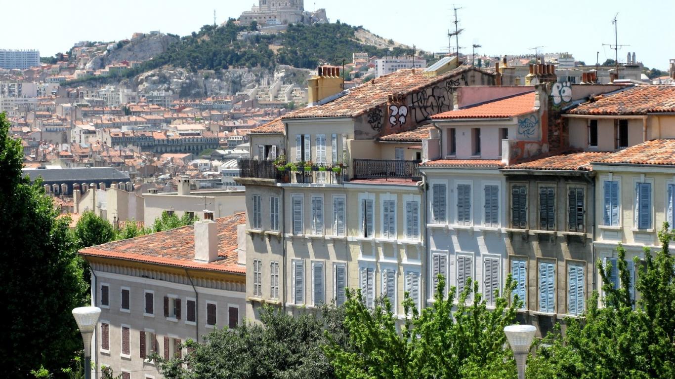 Wallpaper House against the hill in Marseille, France