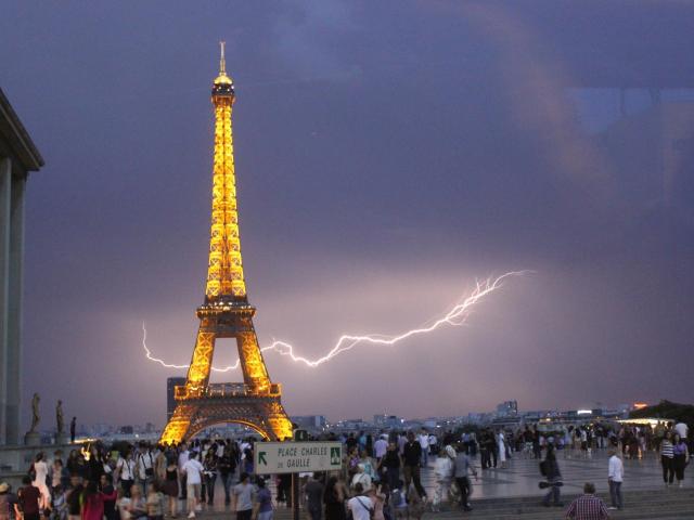 Wallpaper Lightning in the sky behind the Eiffel Tower