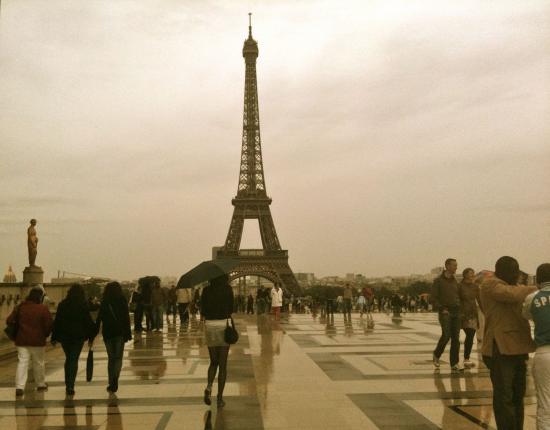 Wallpaper Eiffel Tower in the rain, black and white photo