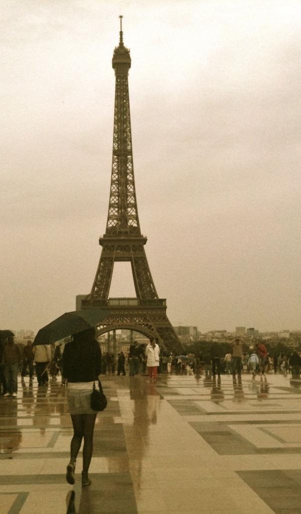 Wallpaper Eiffel Tower in the rain, black and white photo