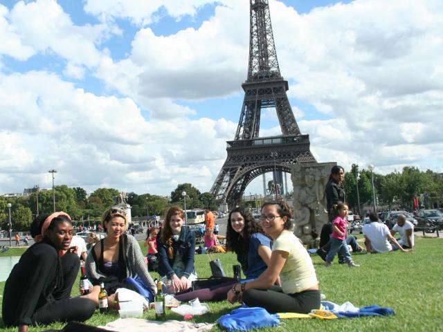 Wallpaper Girls on a background of the Eiffel Tower