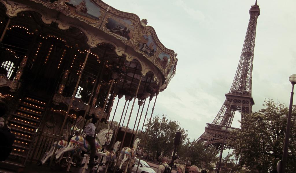 Wallpaper Eiffel Tower and carousel