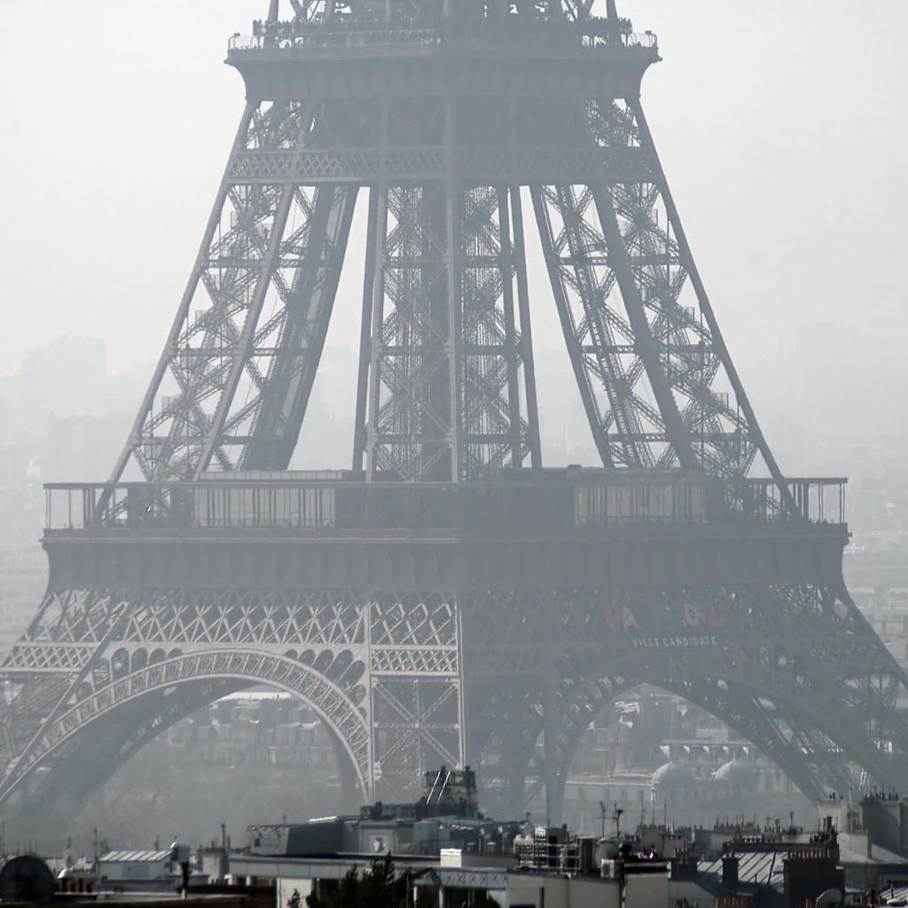 Wallpaper Fragment of the Eiffel Tower, black and white photo