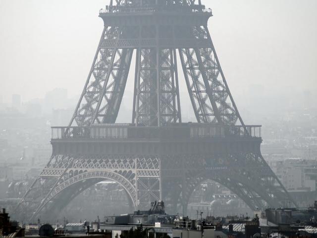 Wallpaper Fragment of the Eiffel Tower, black and white photo