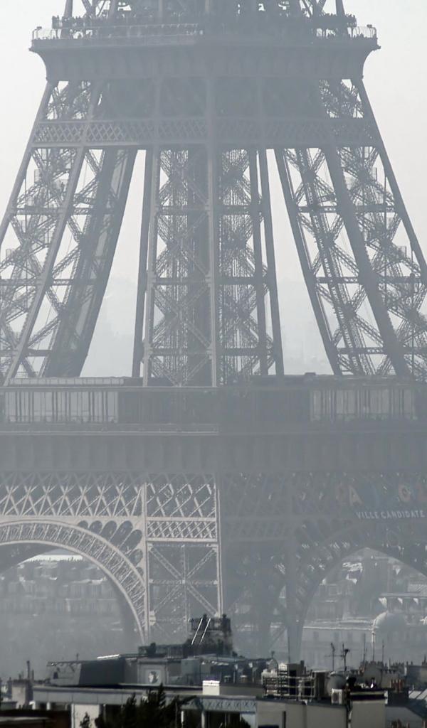 Wallpaper Fragment of the Eiffel Tower, black and white photo