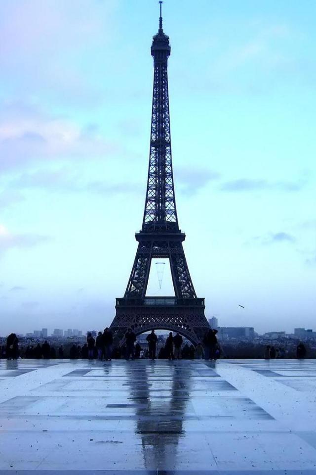 Wallpaper Eiffel Tower in the rain, black and white photo