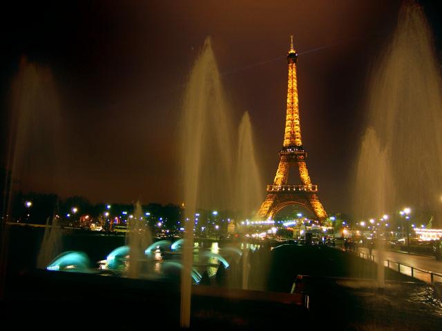 Wallpaper Eiffel tower and fountains, night photo
