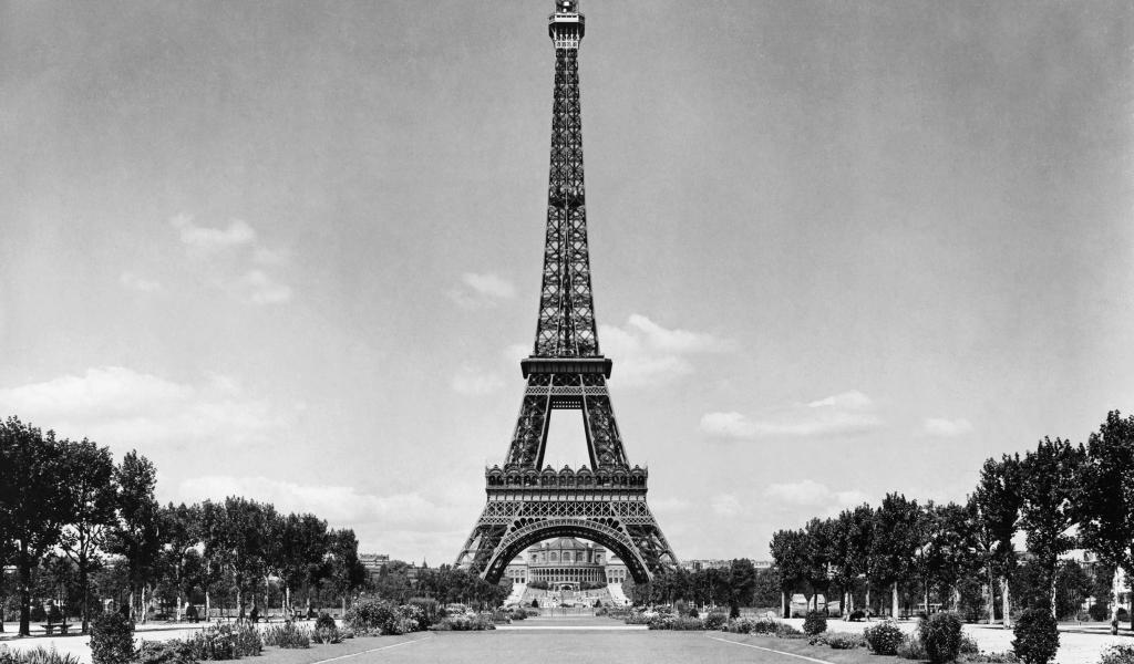 Wallpaper The Eiffel Tower and the park, black and white photo
