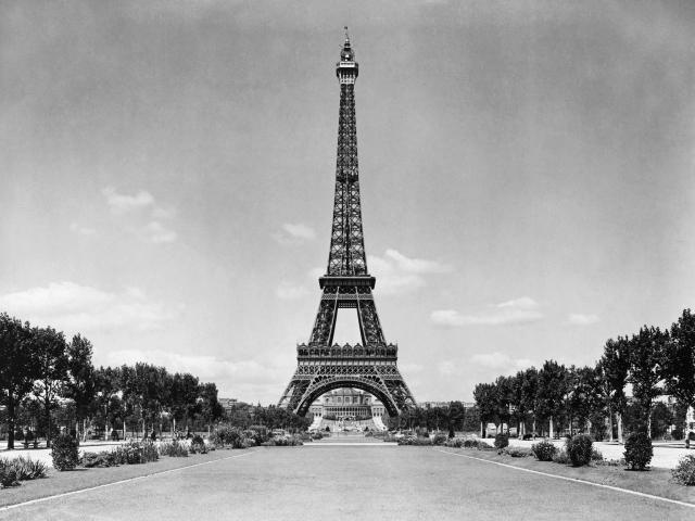 Wallpaper The Eiffel Tower and the park, black and white photo