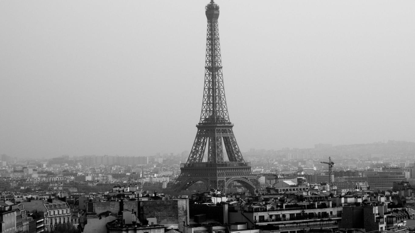 Wallpaper Old, black-and-white photo of the Eiffel Tower