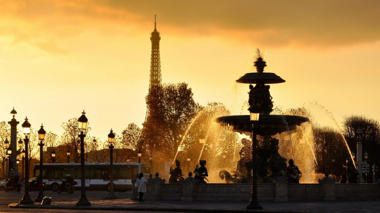 Wallpaper Eiffel Tower and Fountain