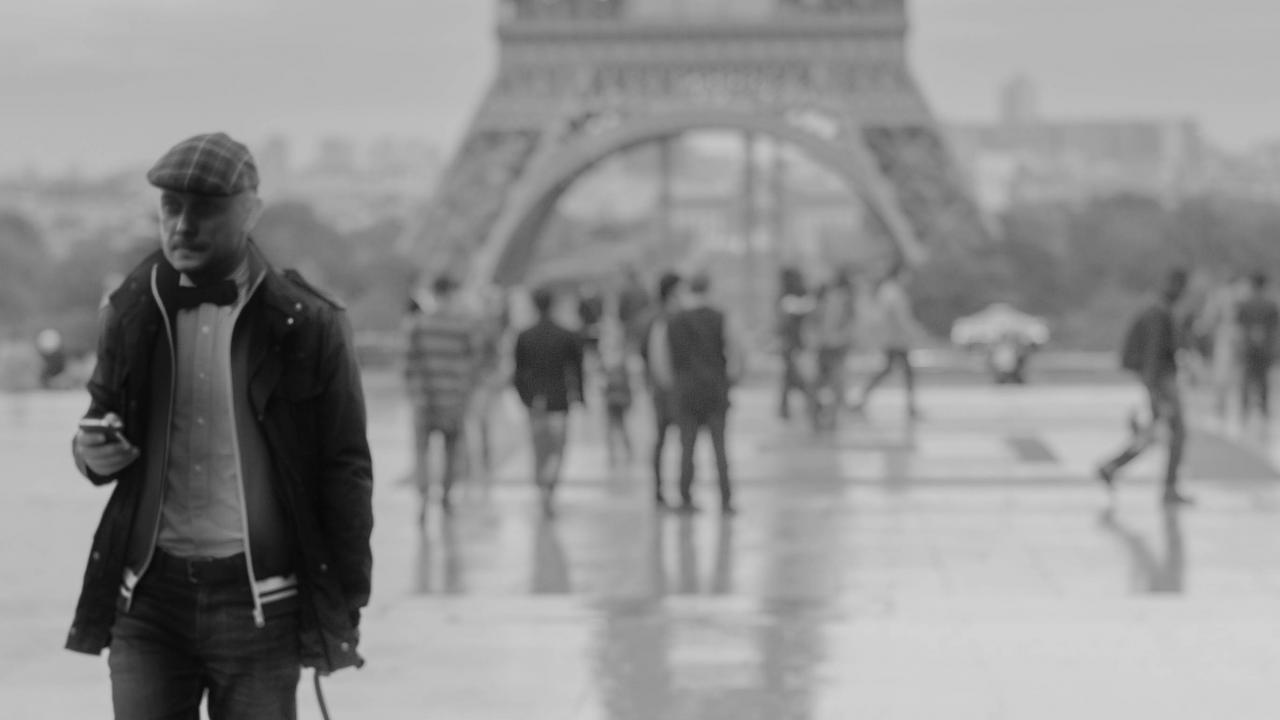Wallpaper People on the background of the Eiffel Tower, black and white photo