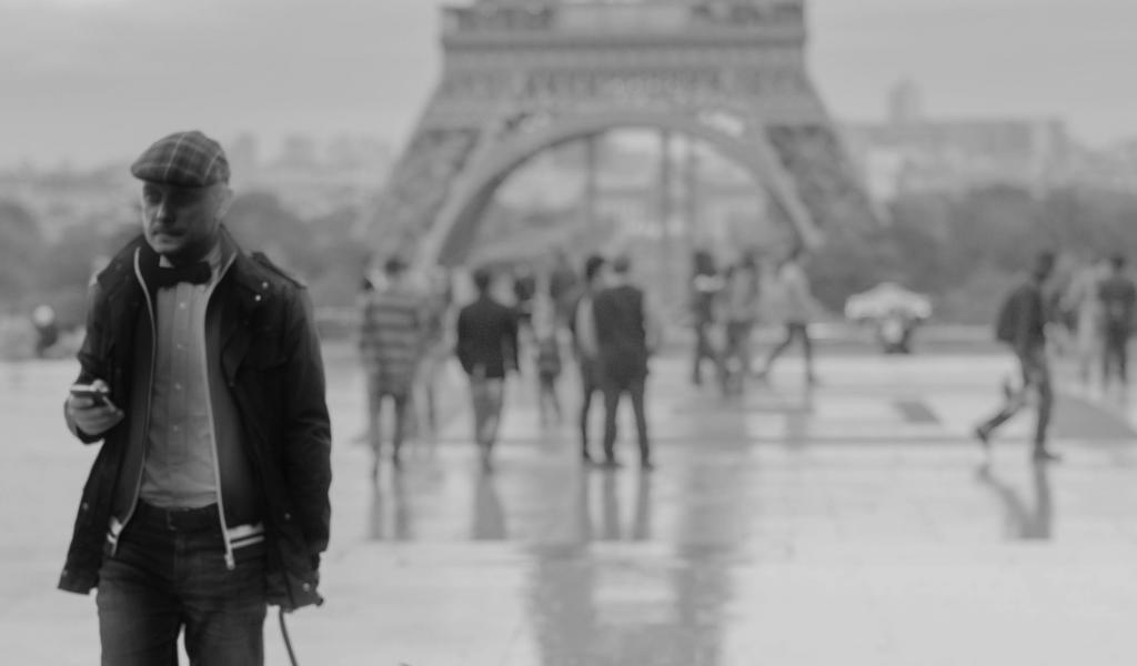 Wallpaper People on the background of the Eiffel Tower, black and white photo