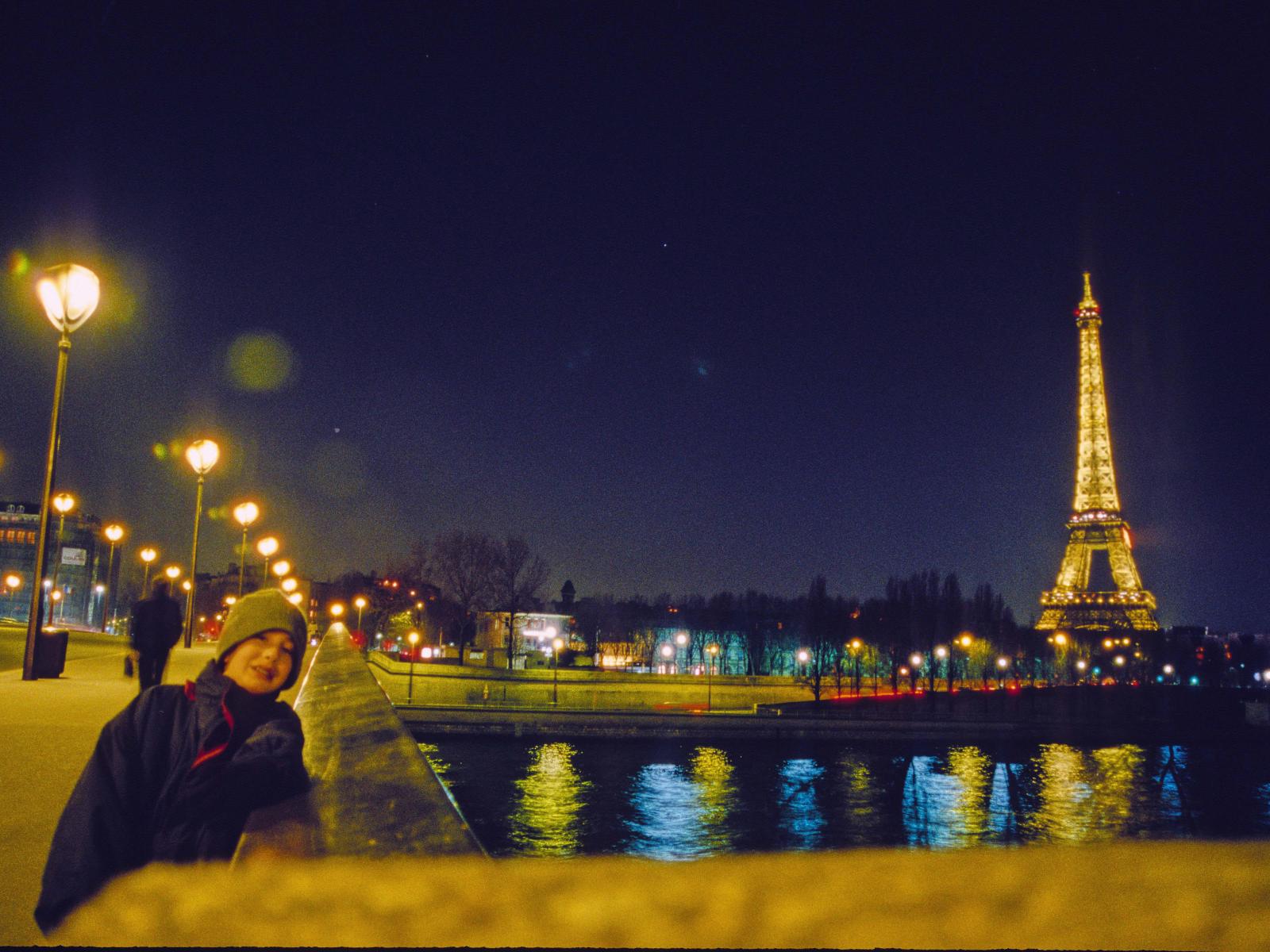 Wallpaper Child and the Eiffel Tower, night photo