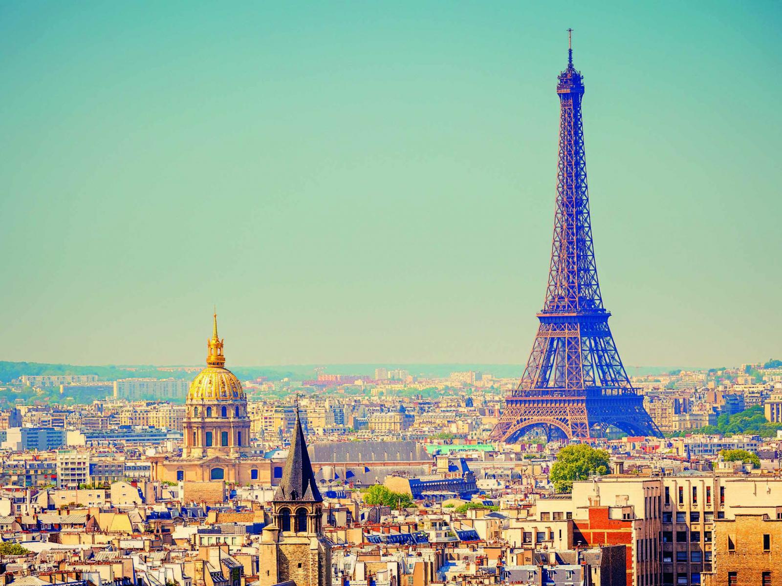 Wallpaper Eiffel tower on background of clouds in Paris, France