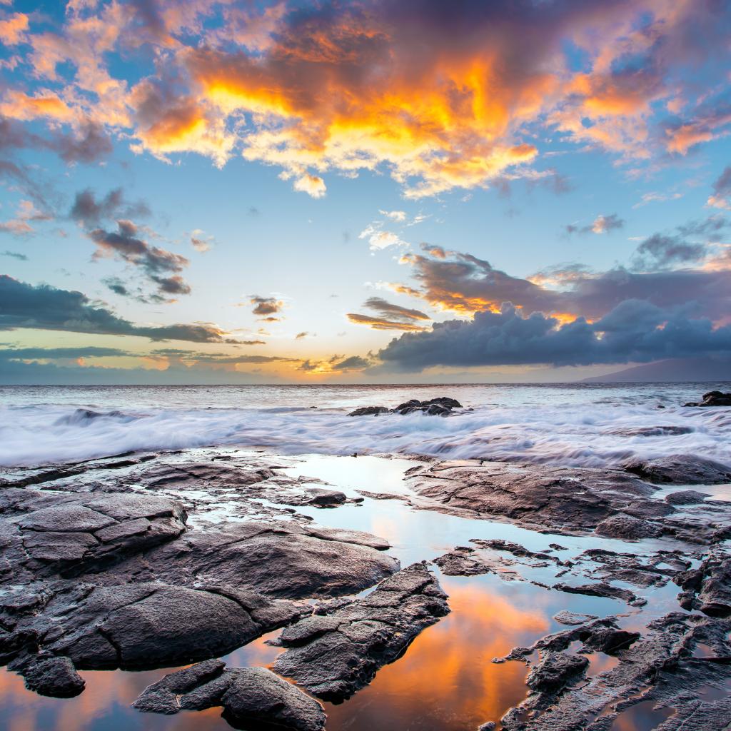 Wallpaper Beautiful sky and rocky shore on the island of Maui, Hawaii
