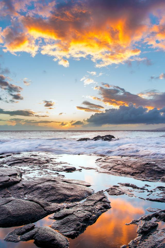 Wallpaper Beautiful sky and rocky shore on the island of Maui, Hawaii