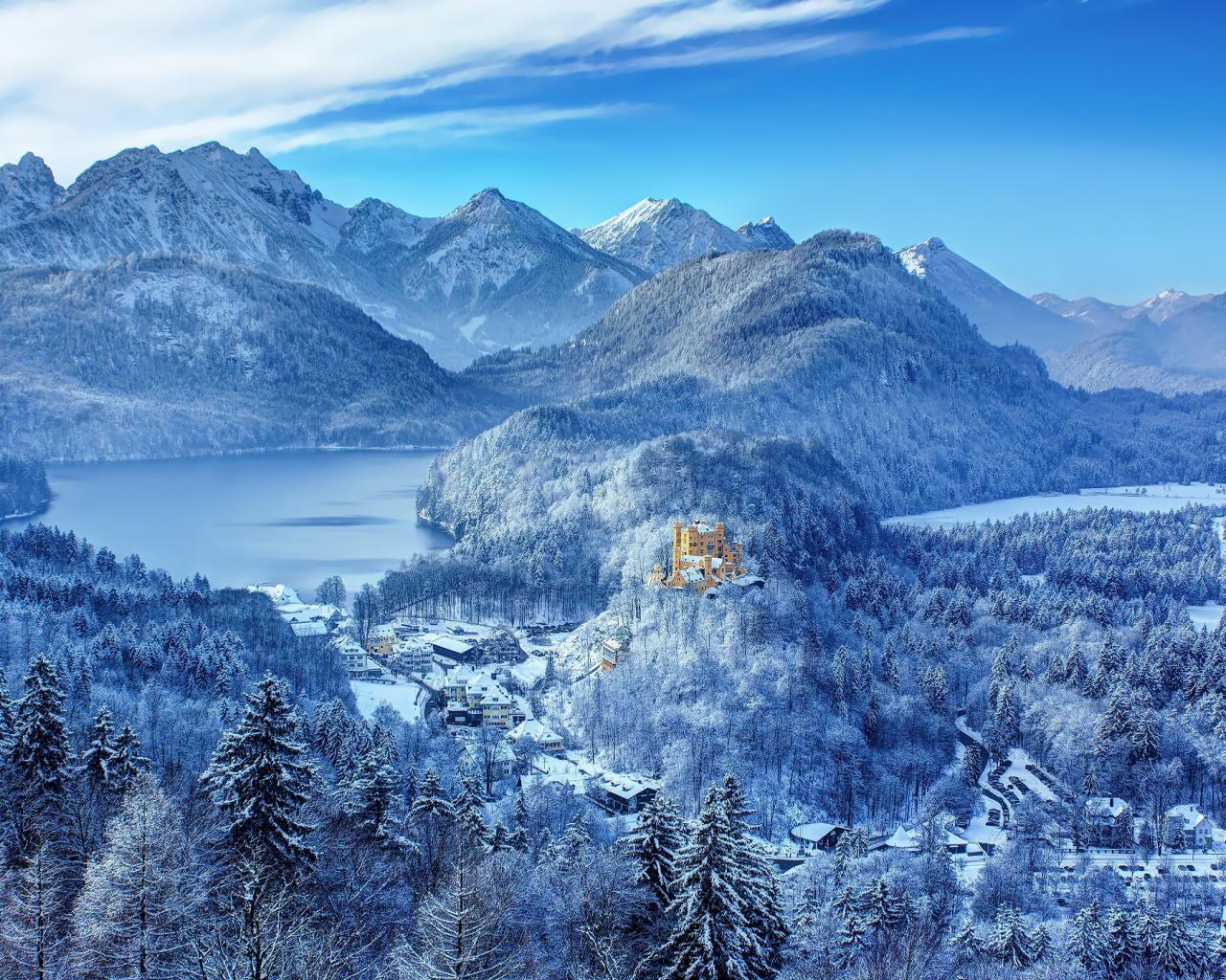 Wallpaper Castle on a mountain in the German Alps