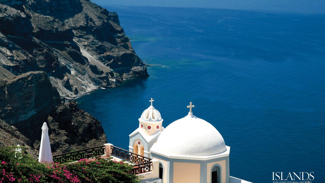 Wallpaper Church over the sea in Greece